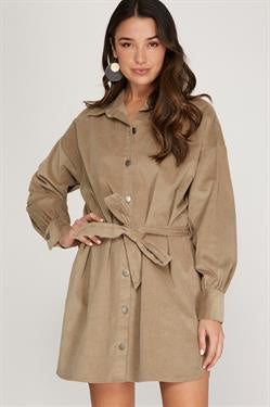 Losing Touch Corduroy Dress Taupe