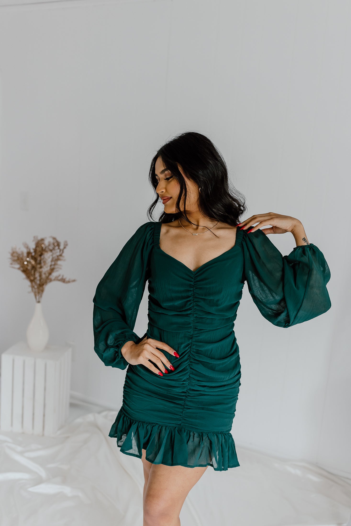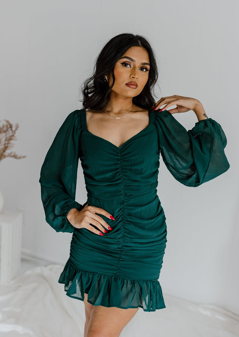 "So Charming" Rouched Dress - Dk. Green