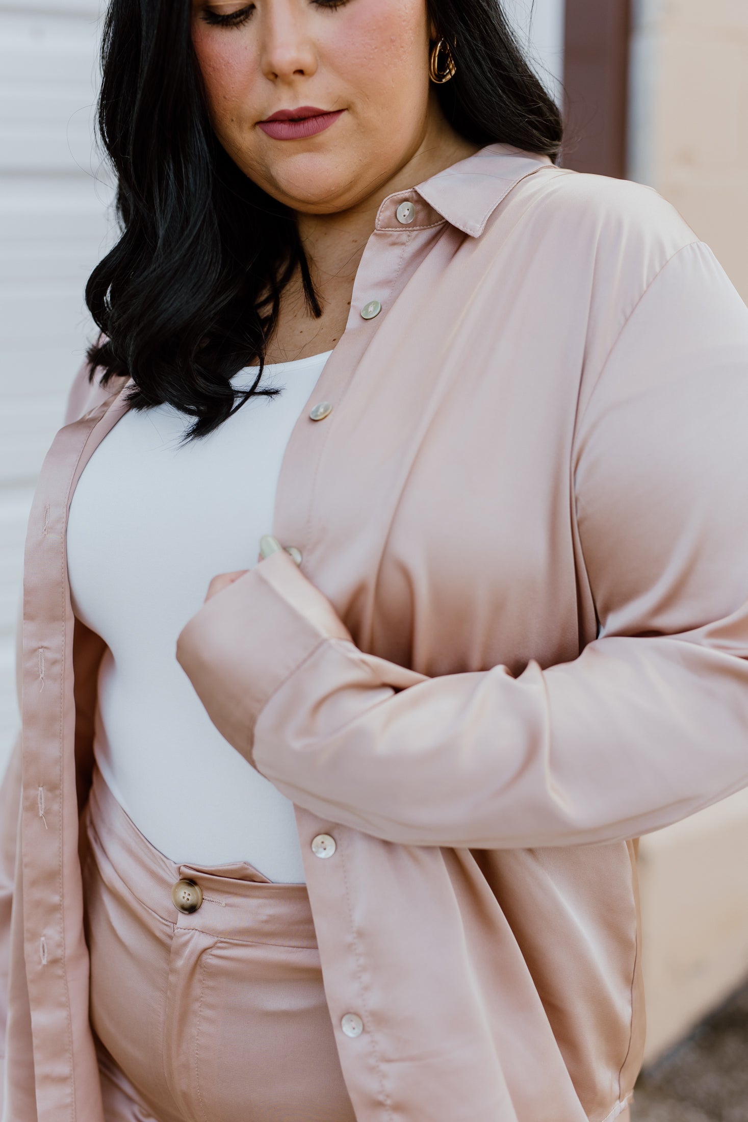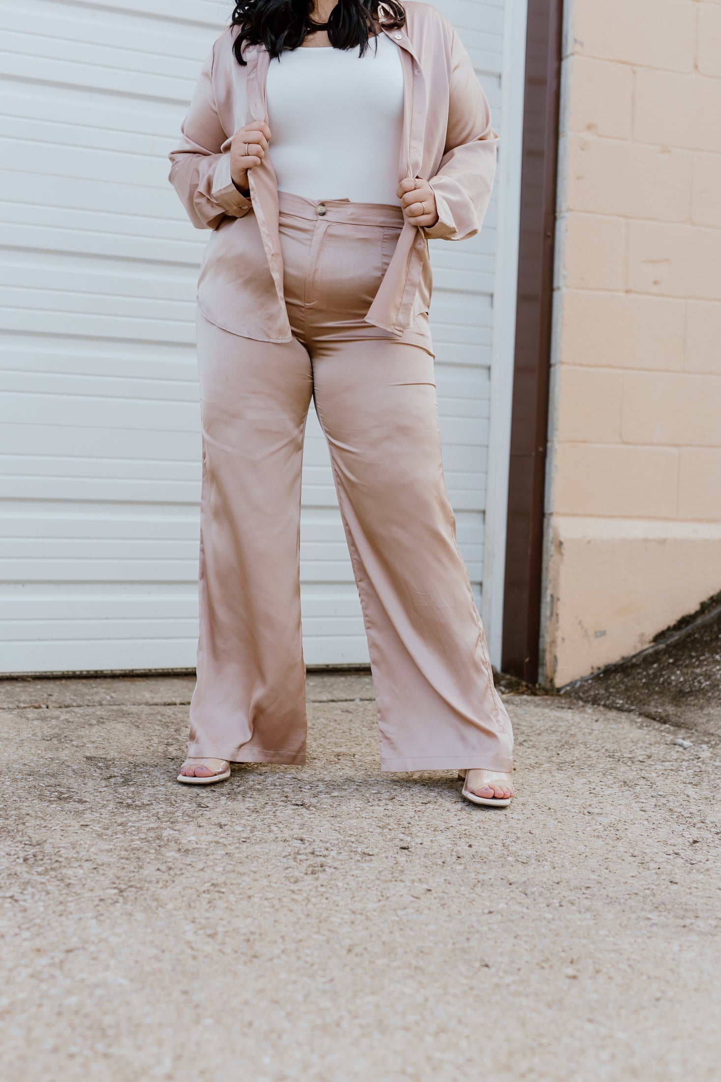 "Time Passes On" Taupe Satin 2-Piece - XL+