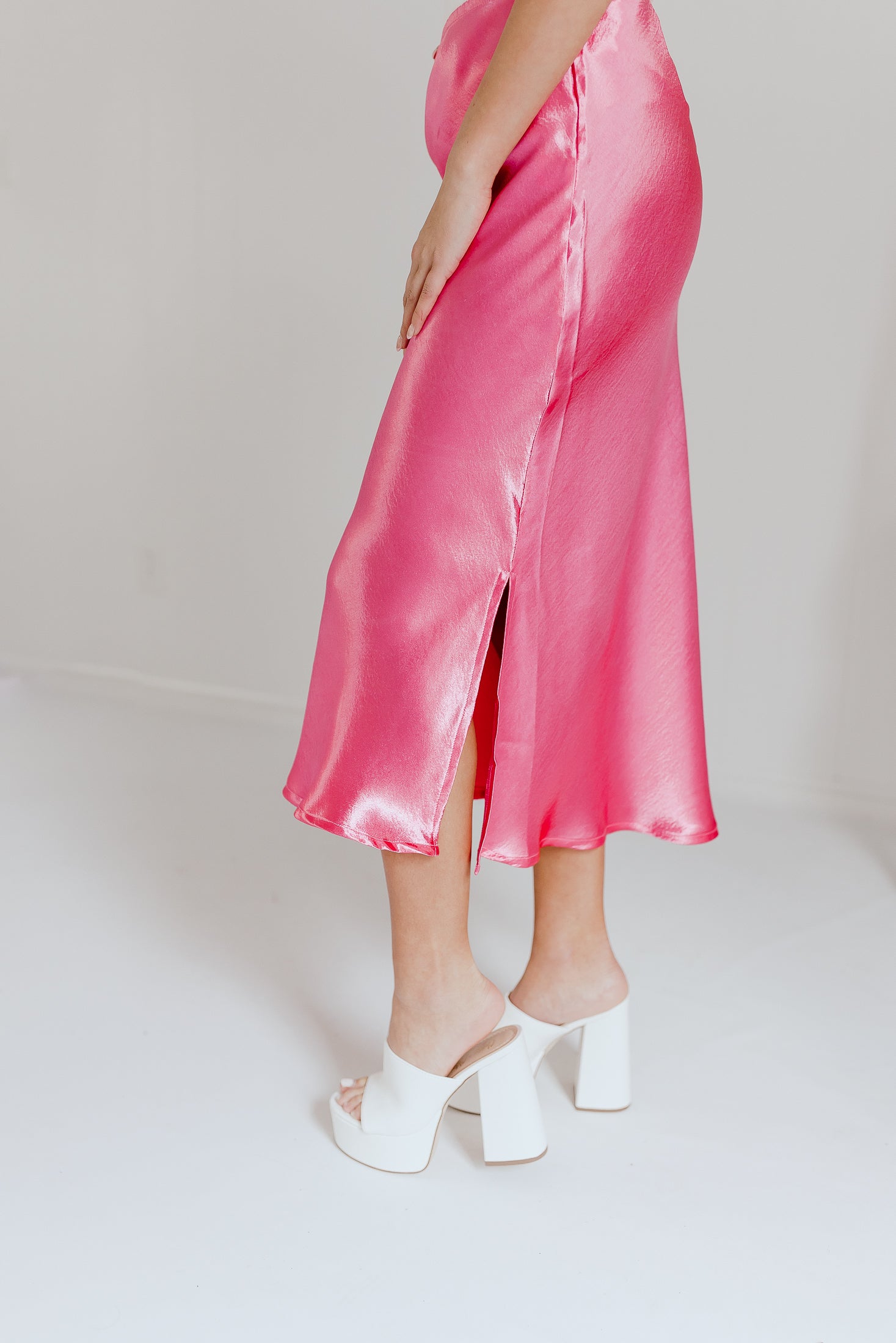 "Across The Room" Satin Midi Skirt - Rose Pink