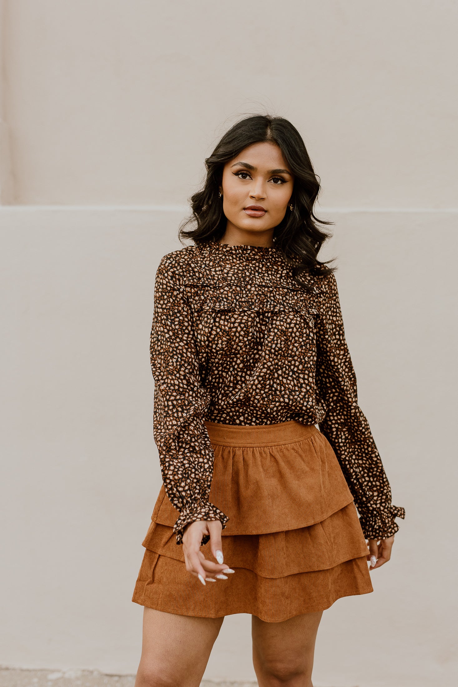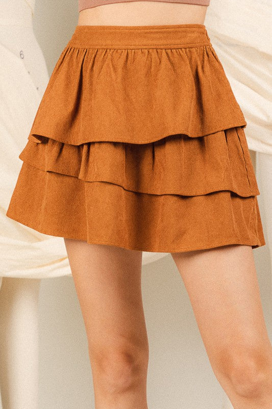 "Bitter Sweet" Ruffle Corduroy Skirt - Brown