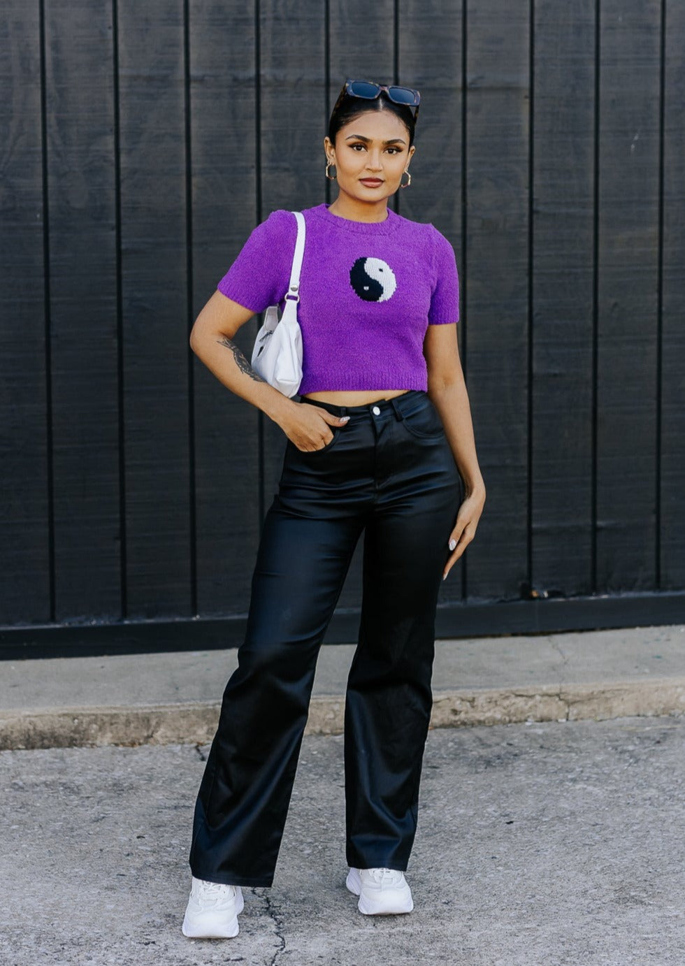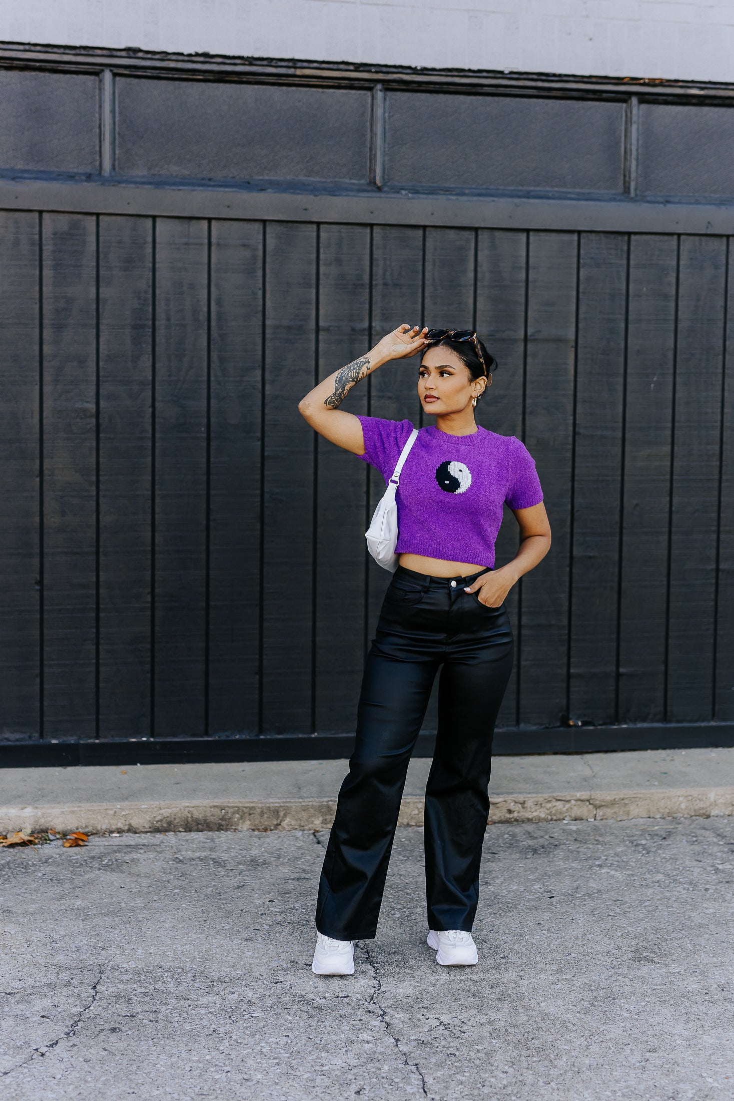 "All The Vibes" Yin-Yang Cropped Sweater - Purple