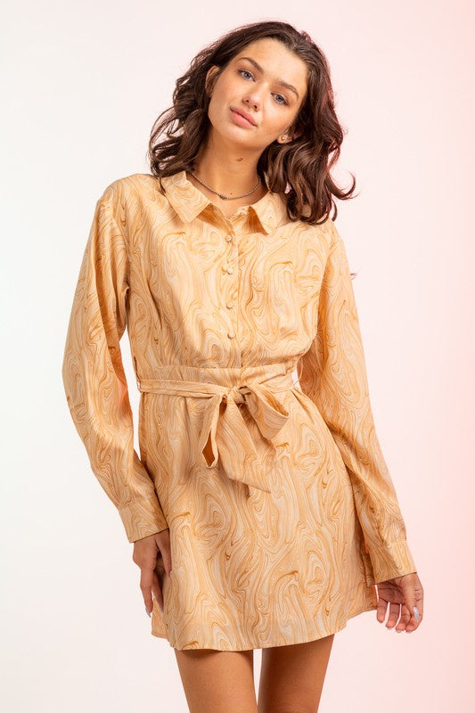 "Alright With Me" Longsleeve Button-Up Dress - Tan
