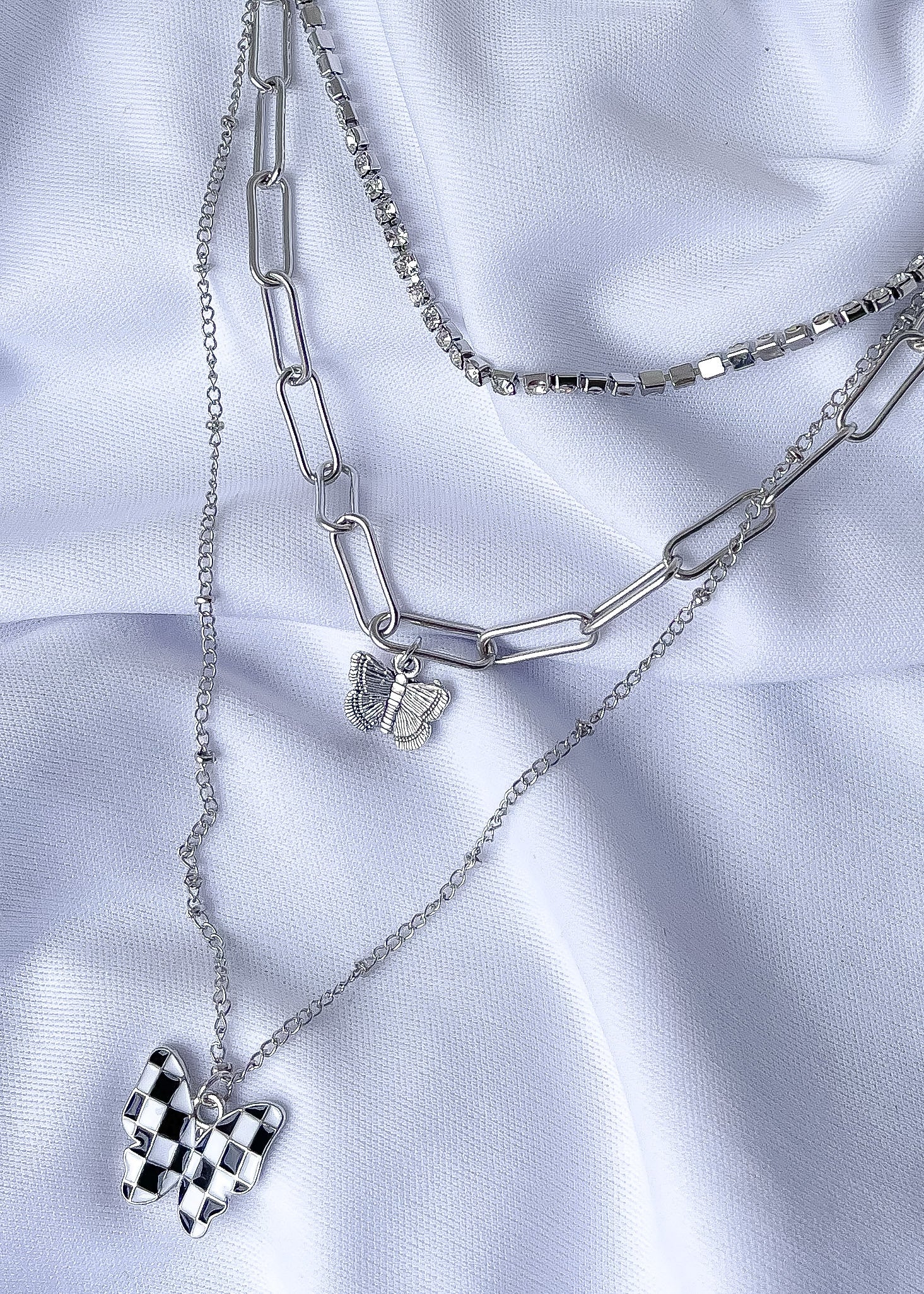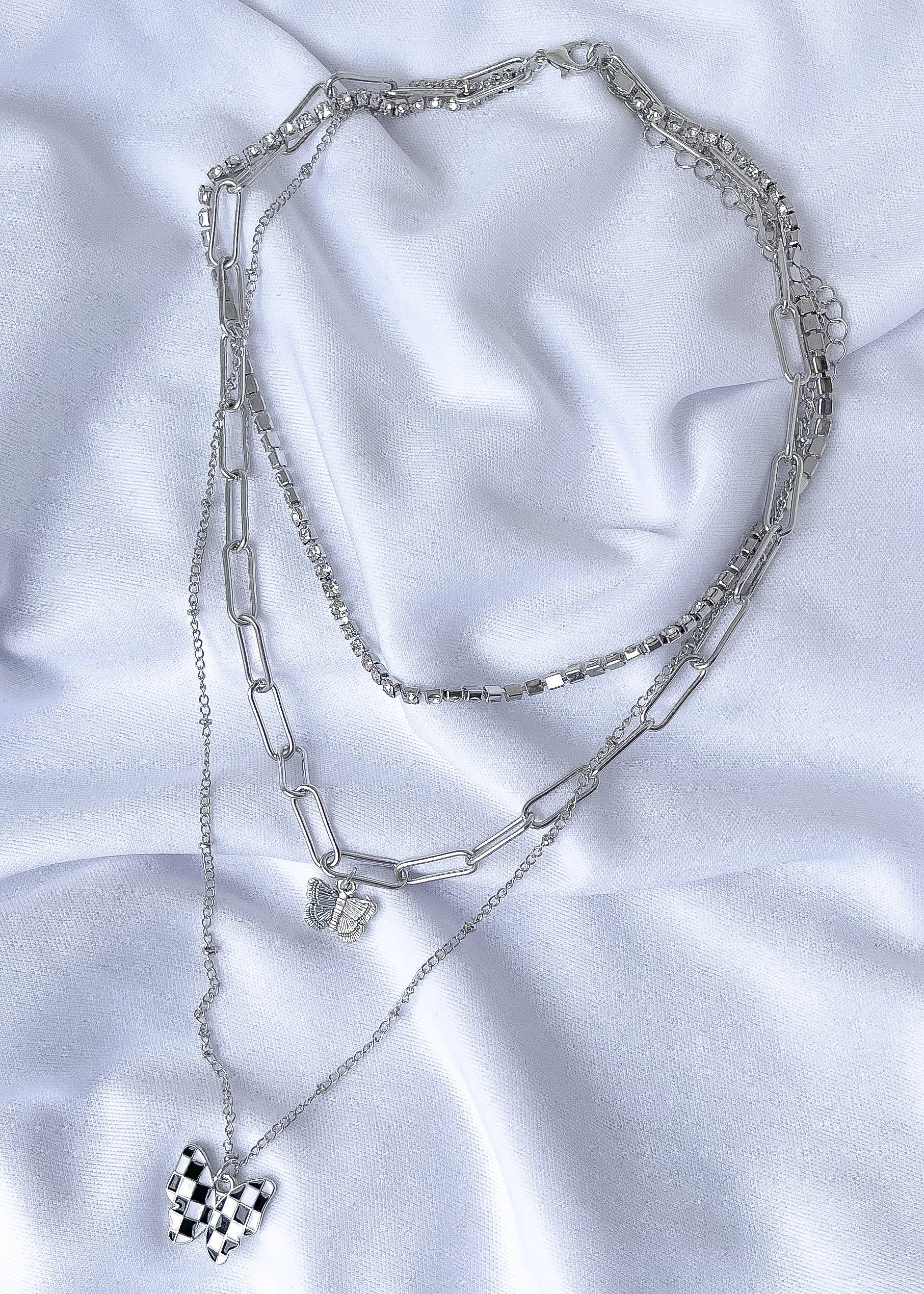 Checker Butterfly Pendant Necklace