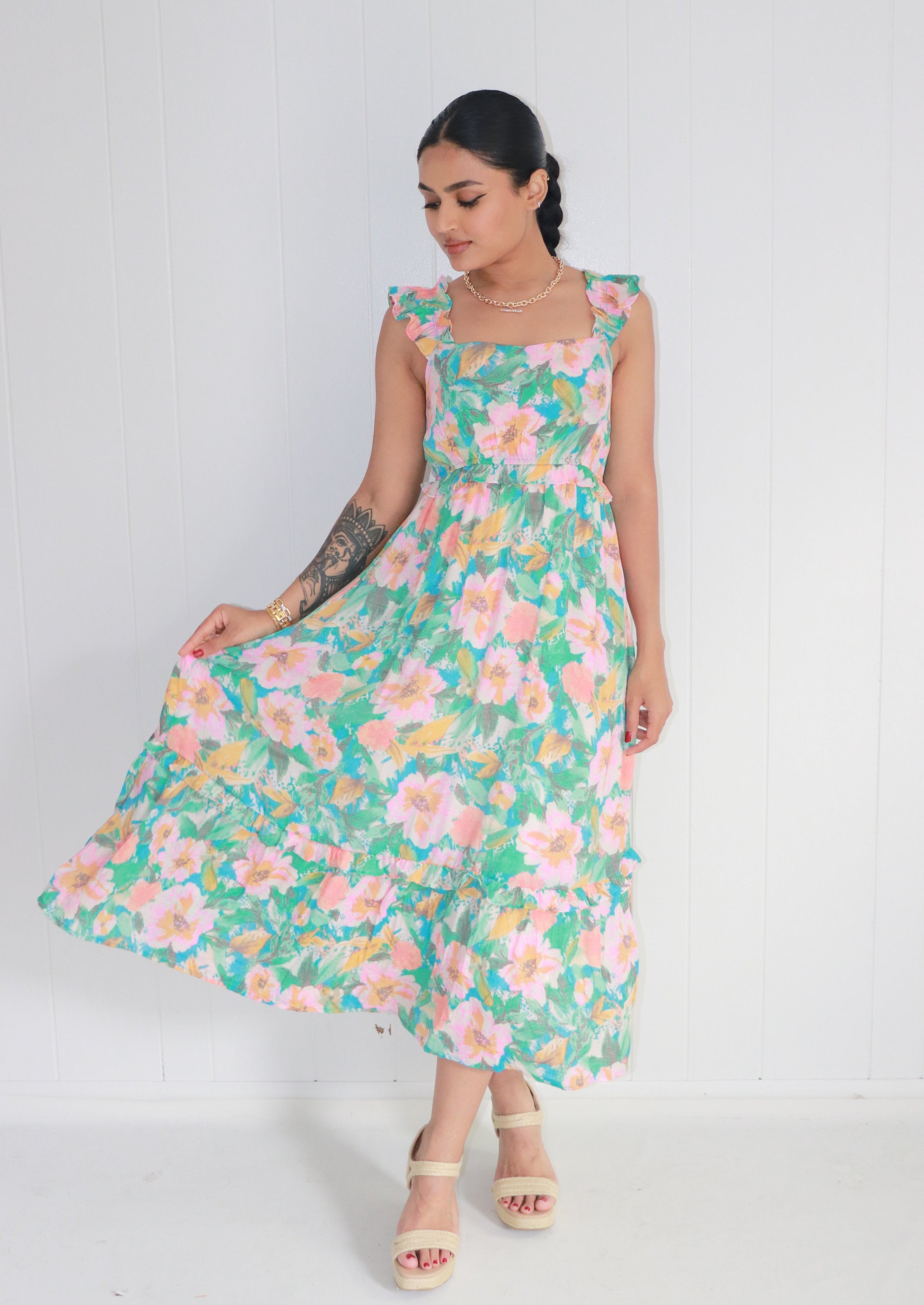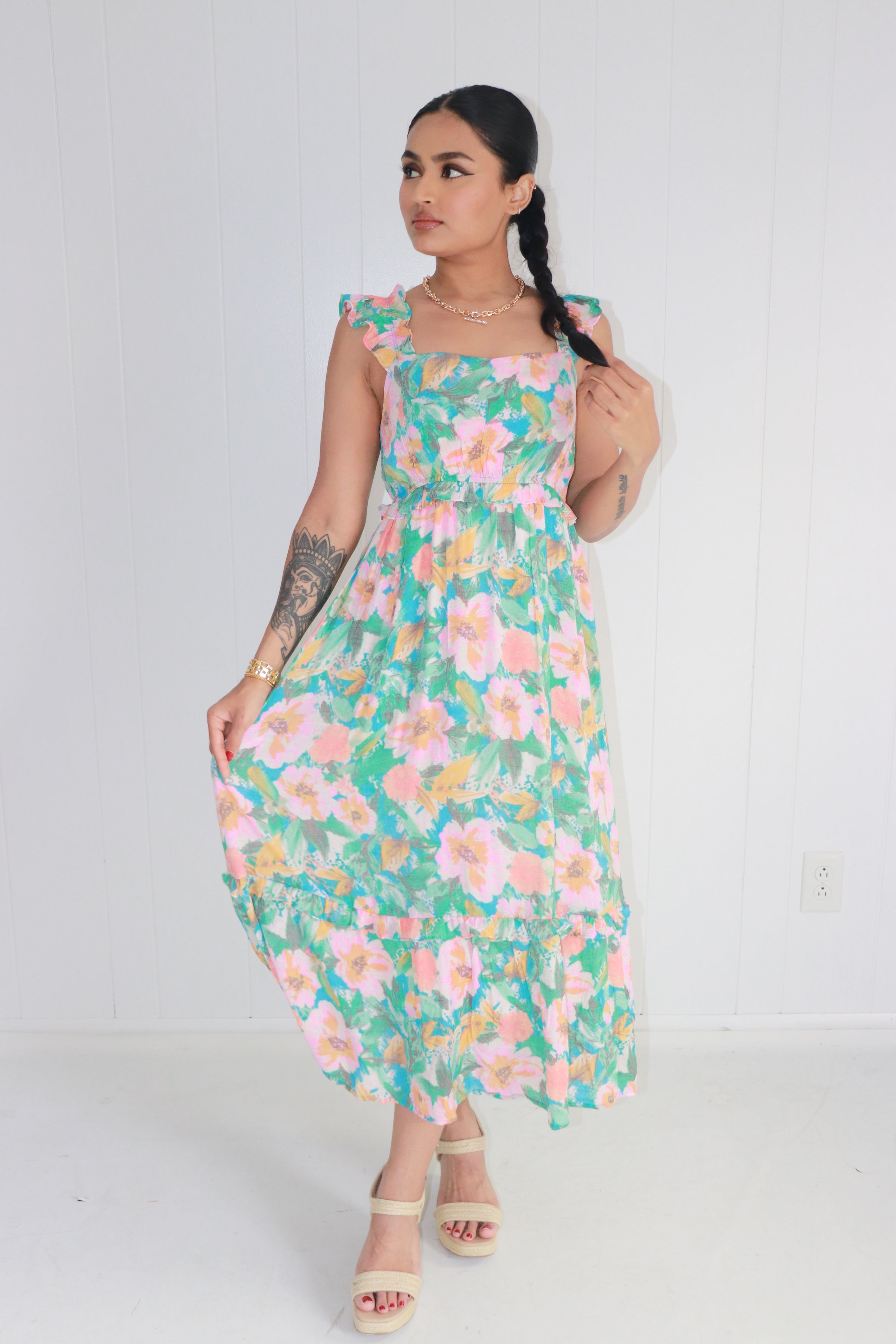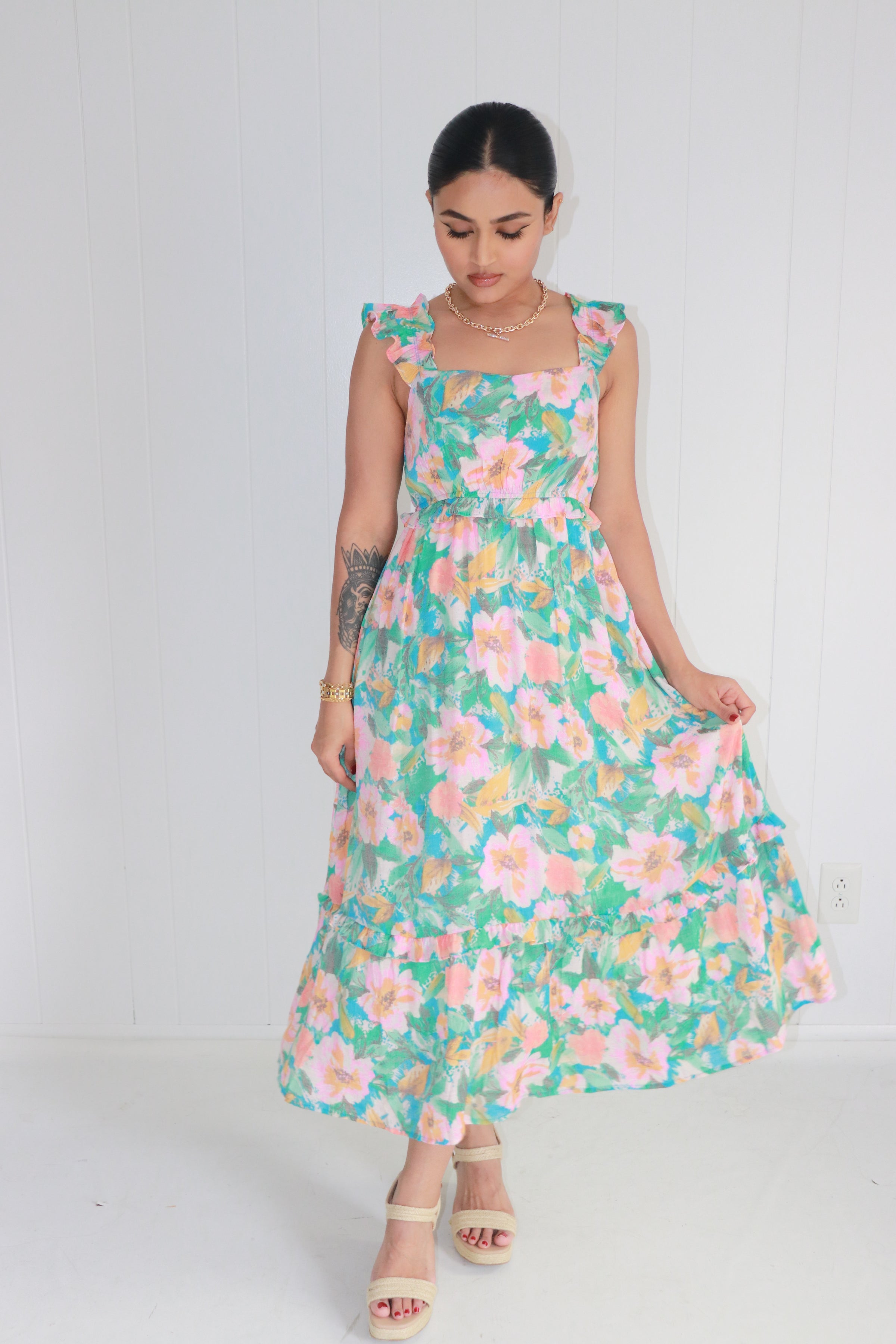 Colored In Love Floral Midi Dress- Aqua
