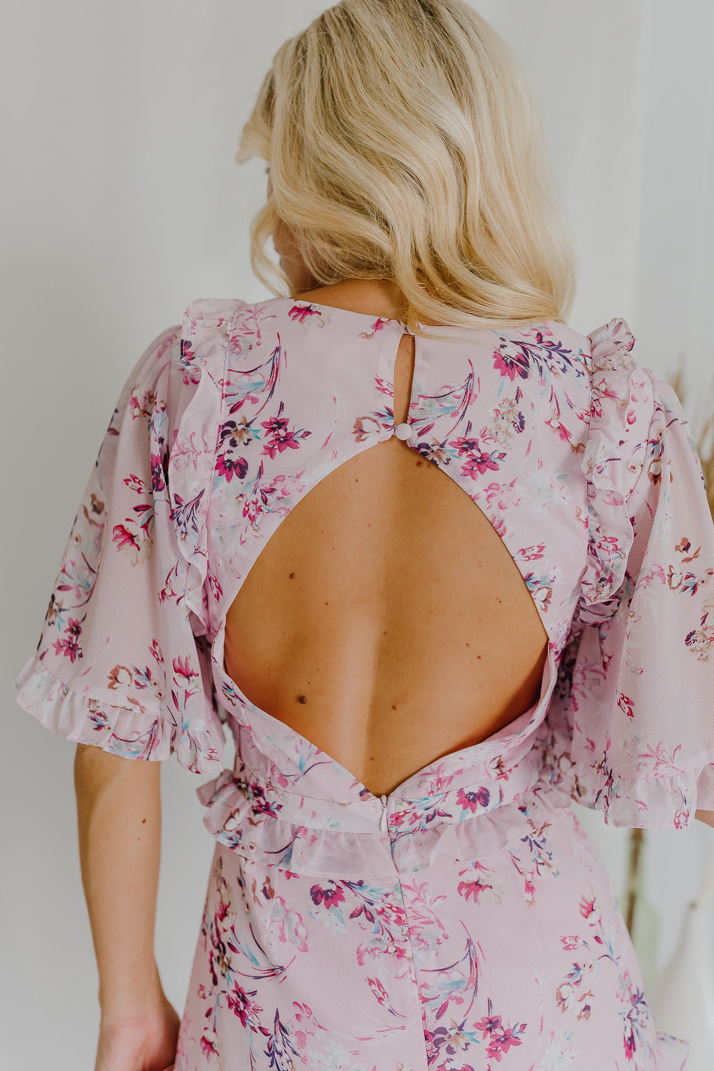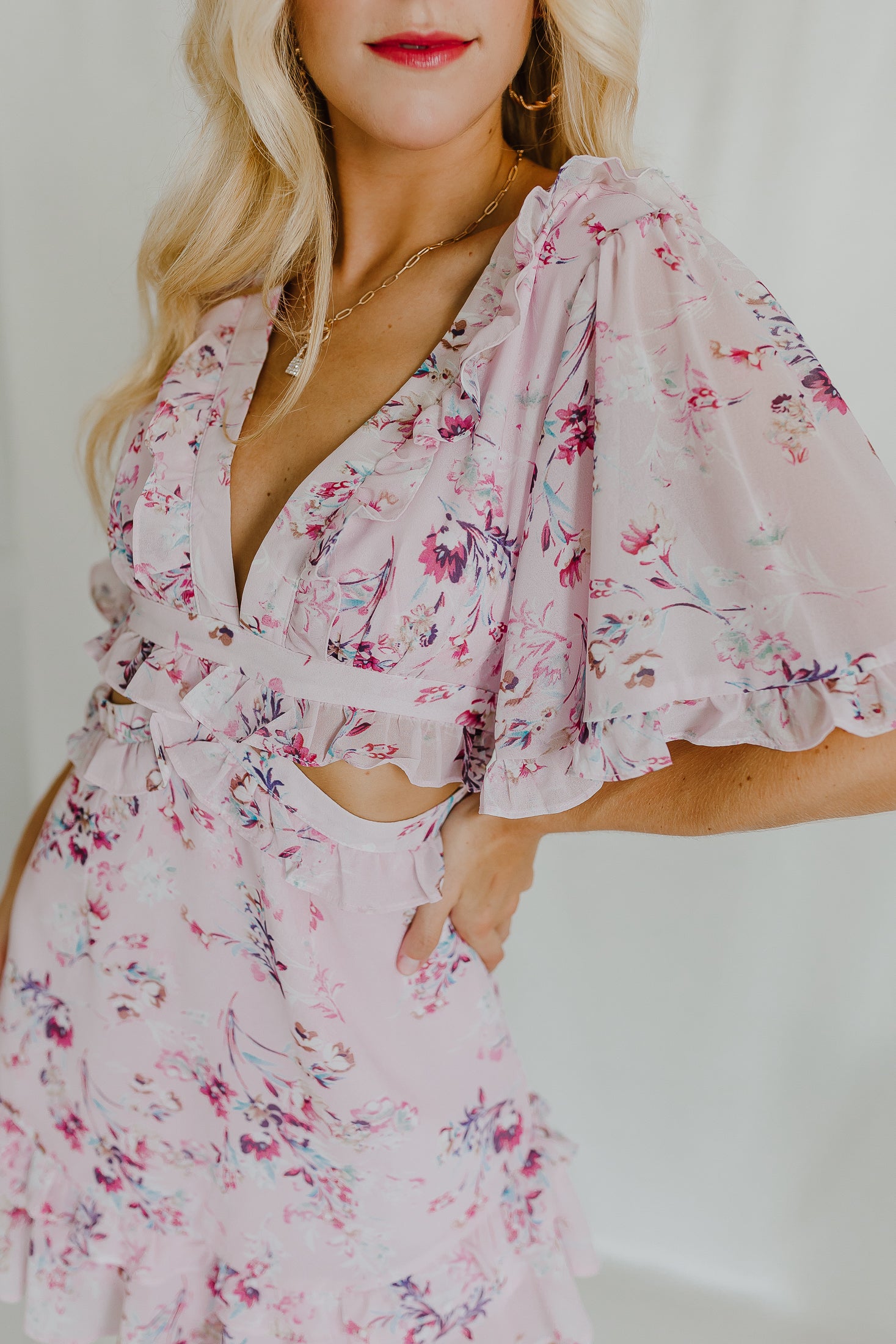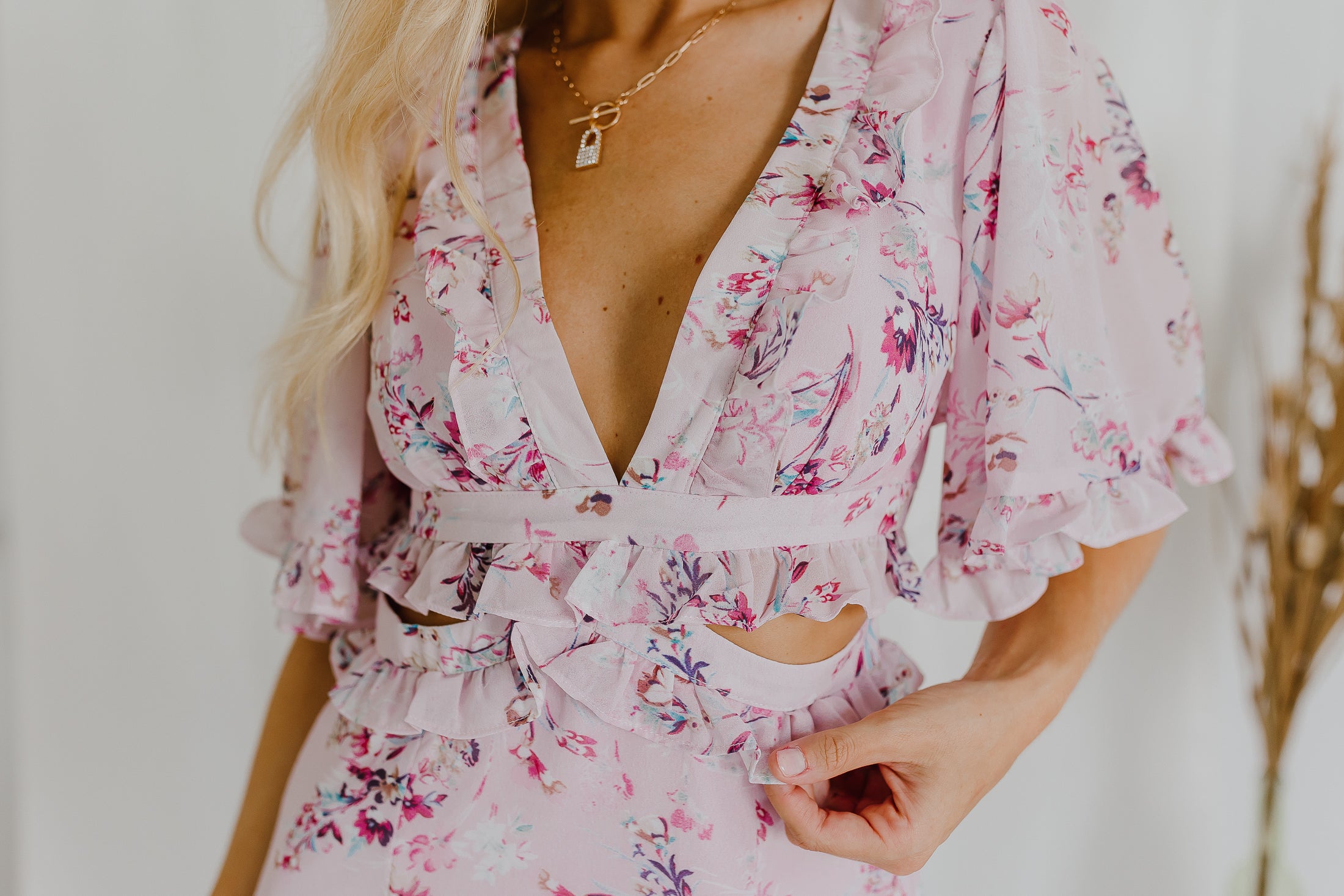 "Forever’s Not Enough" Floral Ruffle Cut-Out Dress - Lt. Pink