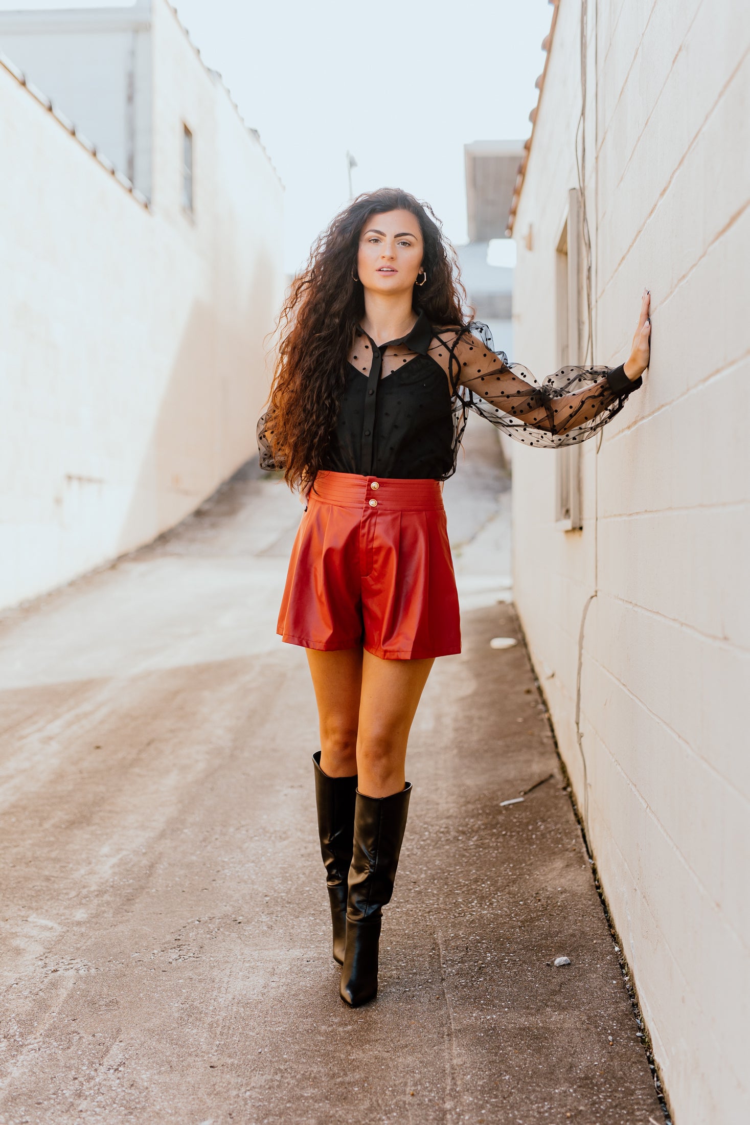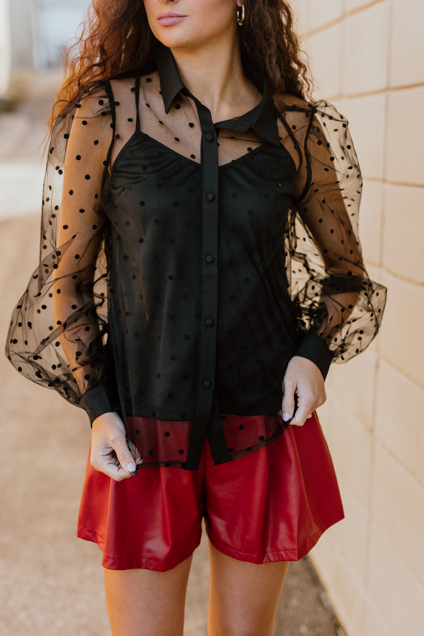 "Lost In The Lights" Mesh Dotted Button-Up Top - Black