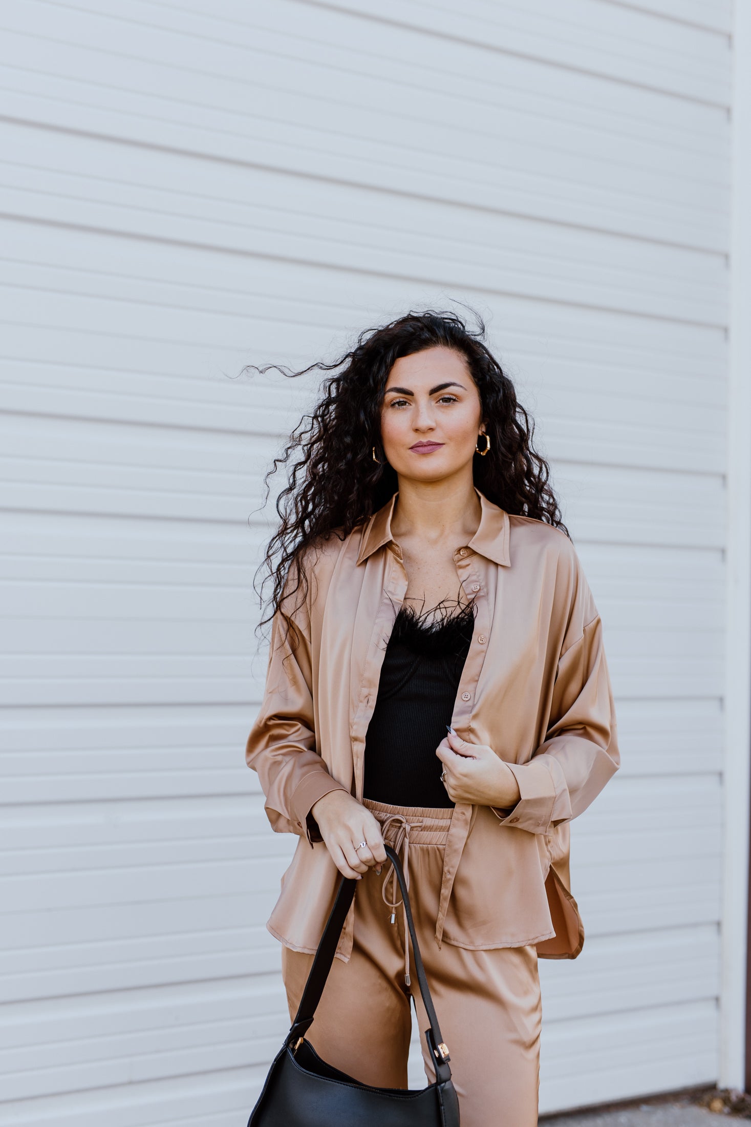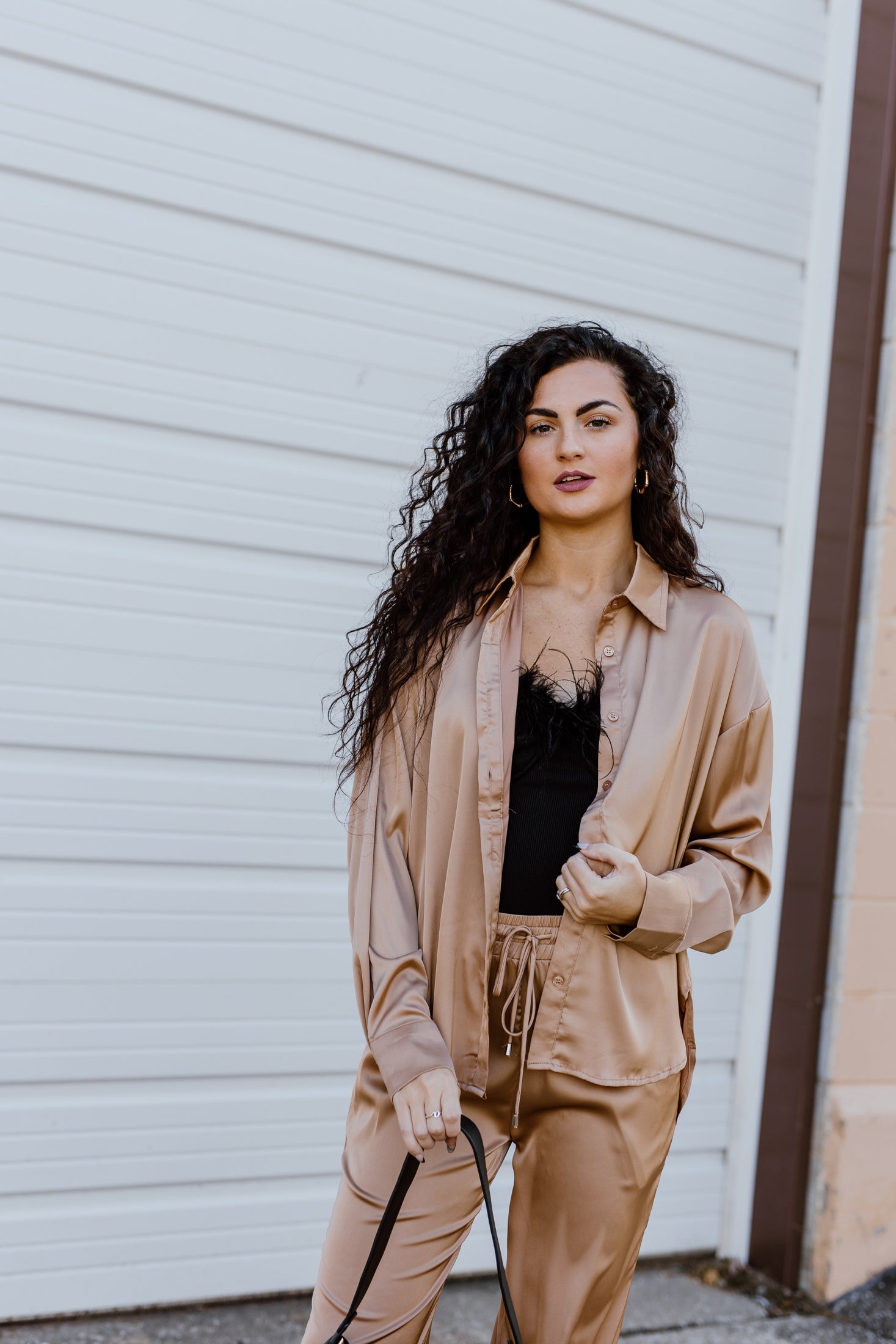 "Press Snooze" Beige Satin 2-Piece