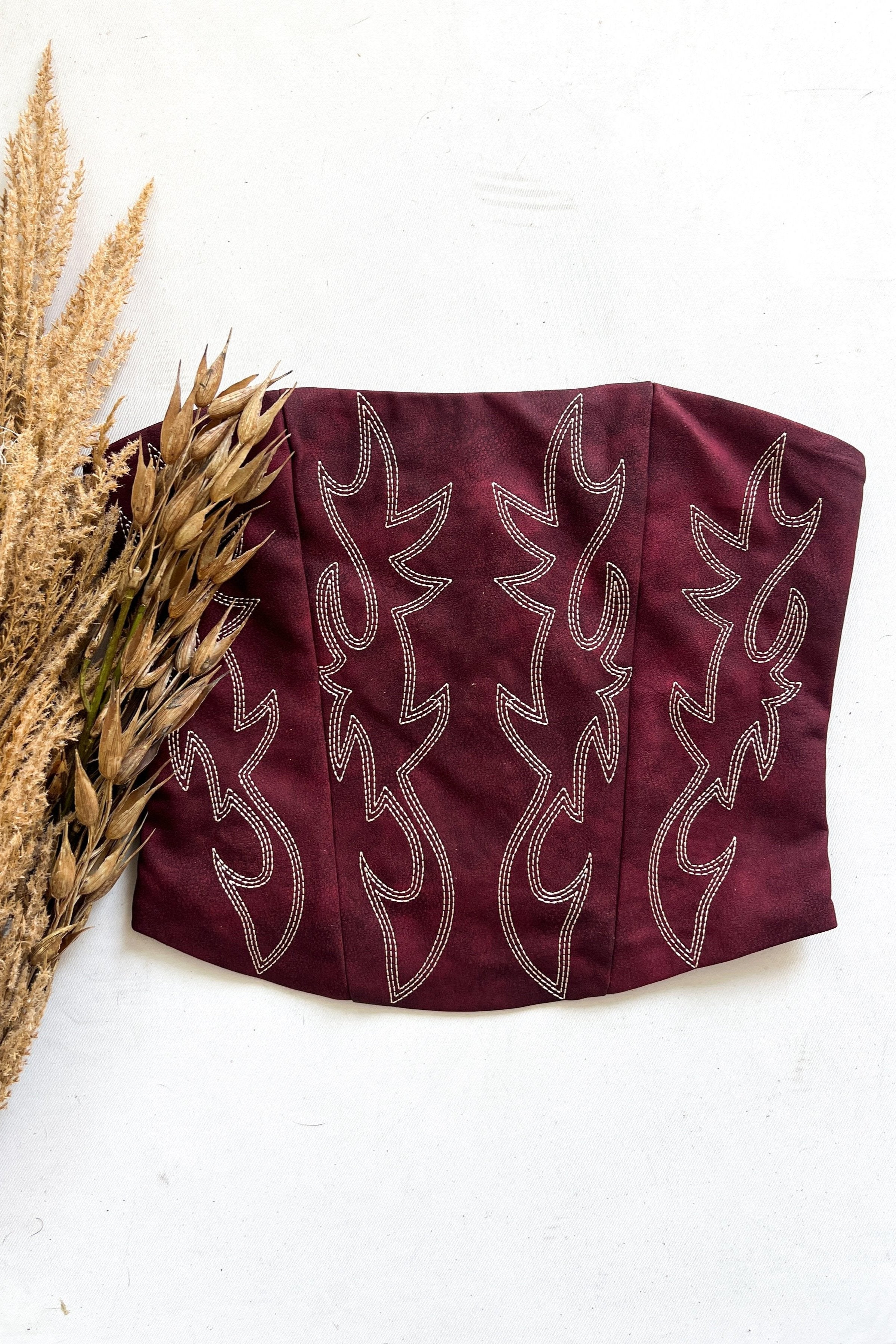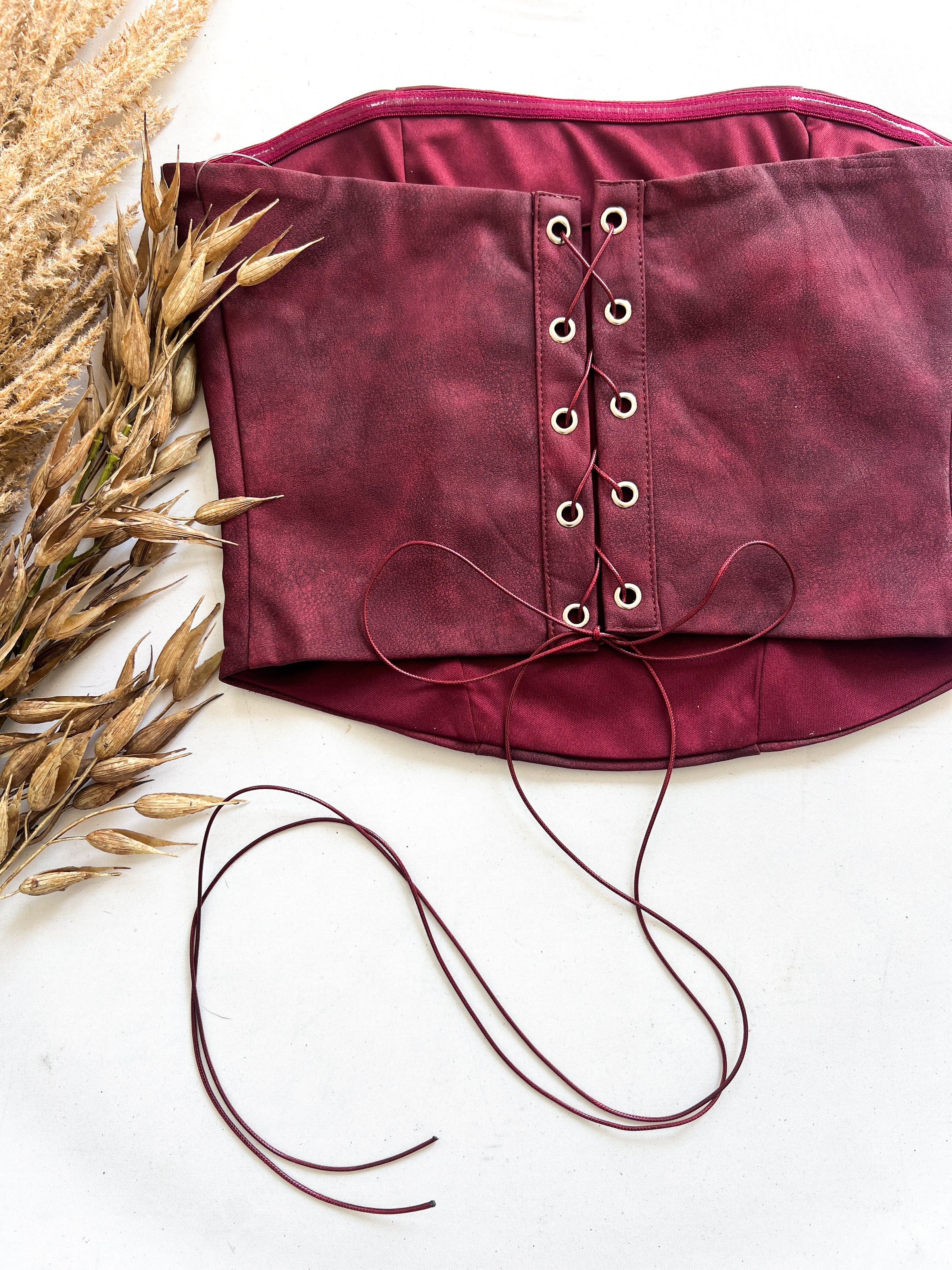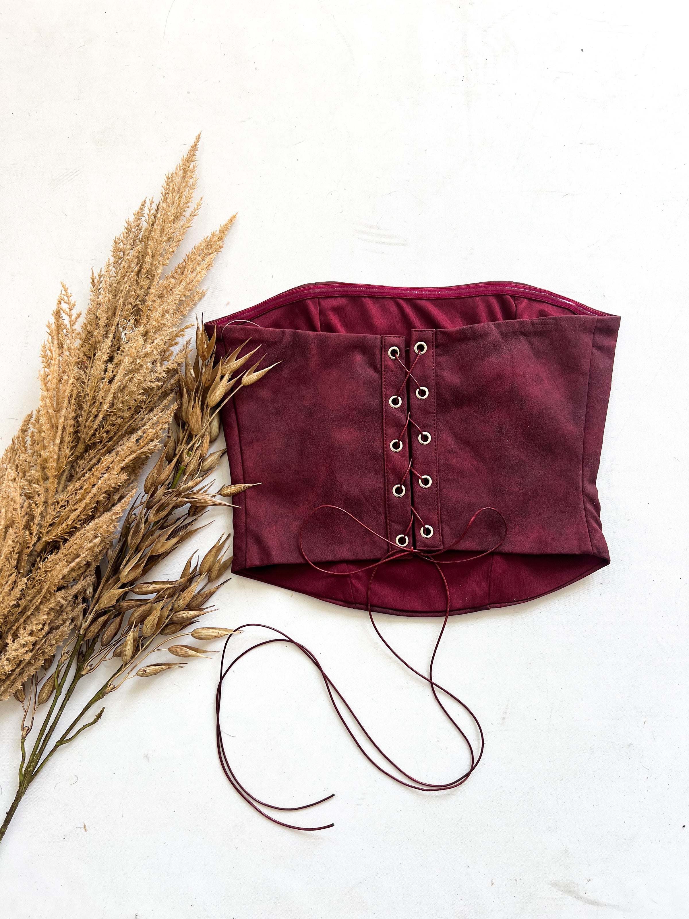 Rodeo Chic Leather Corset Top Maroon