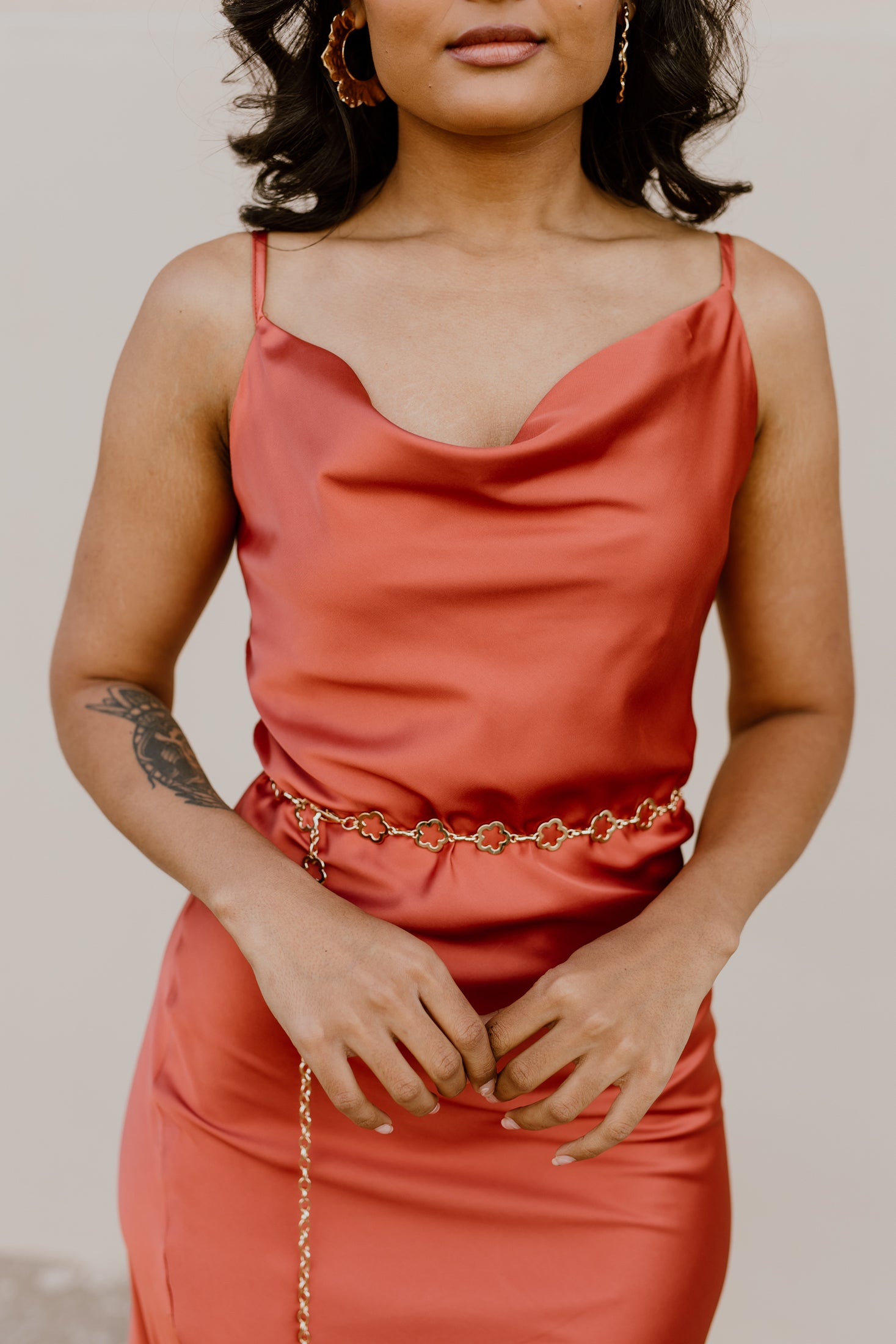 "She Lights A Fire" Satin Midi Slip Dress - Rust