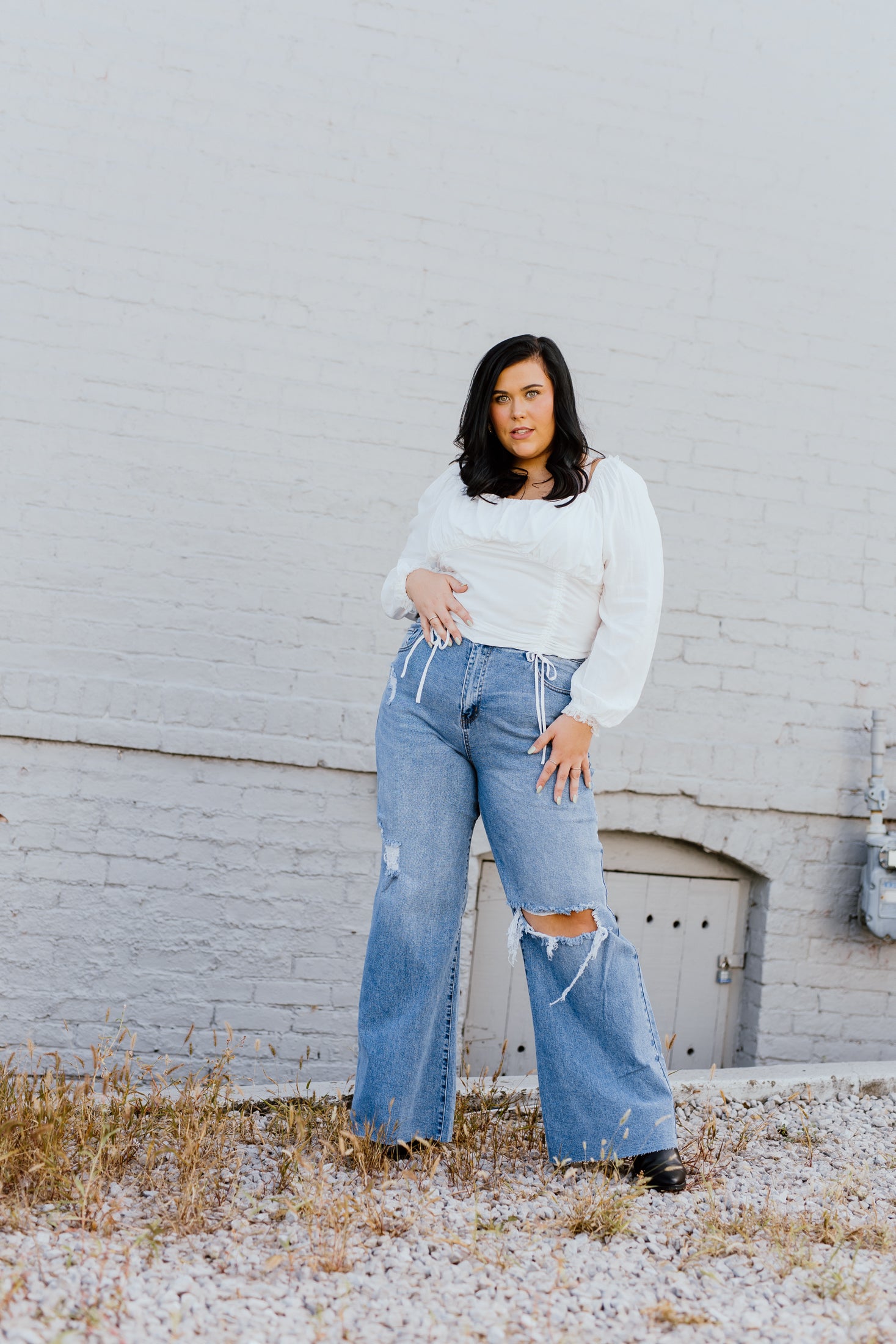 "She’s A Keeper" White Cinch Mocked Top - XL+