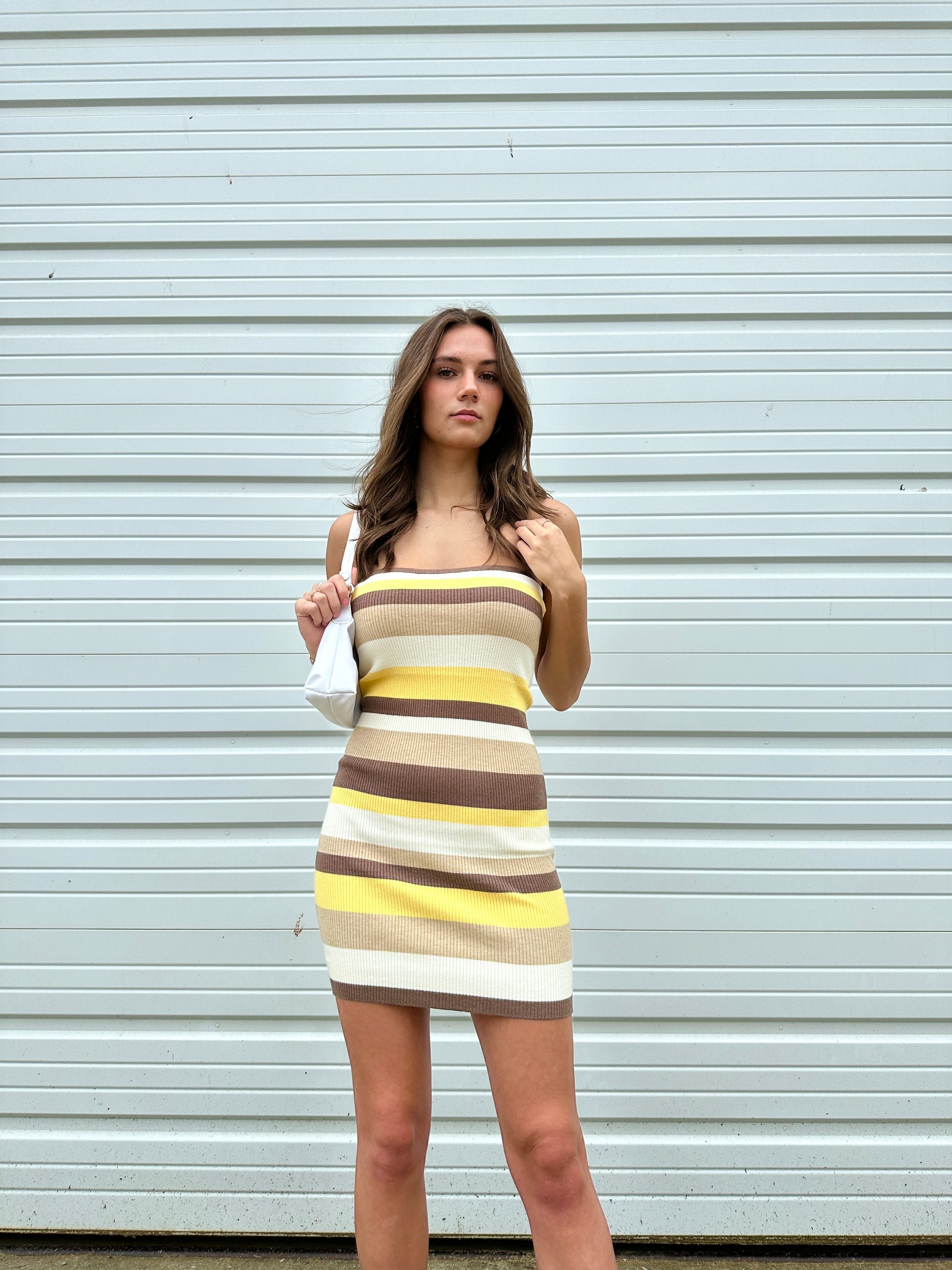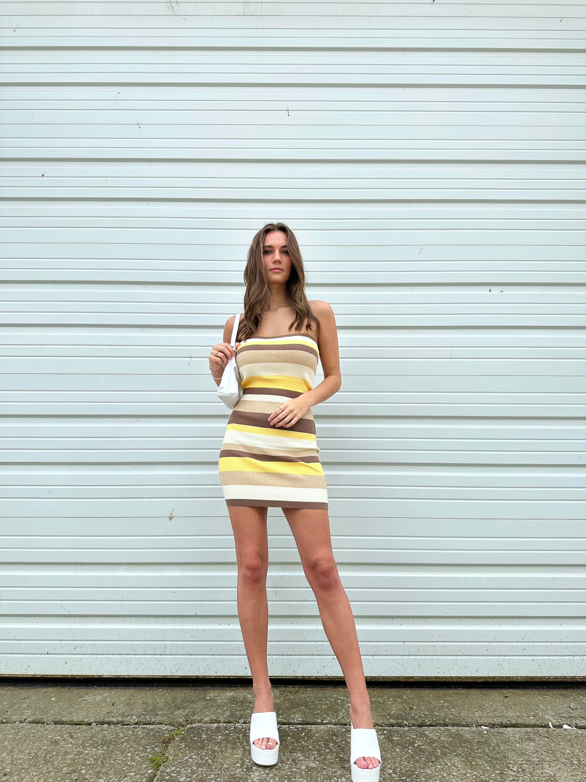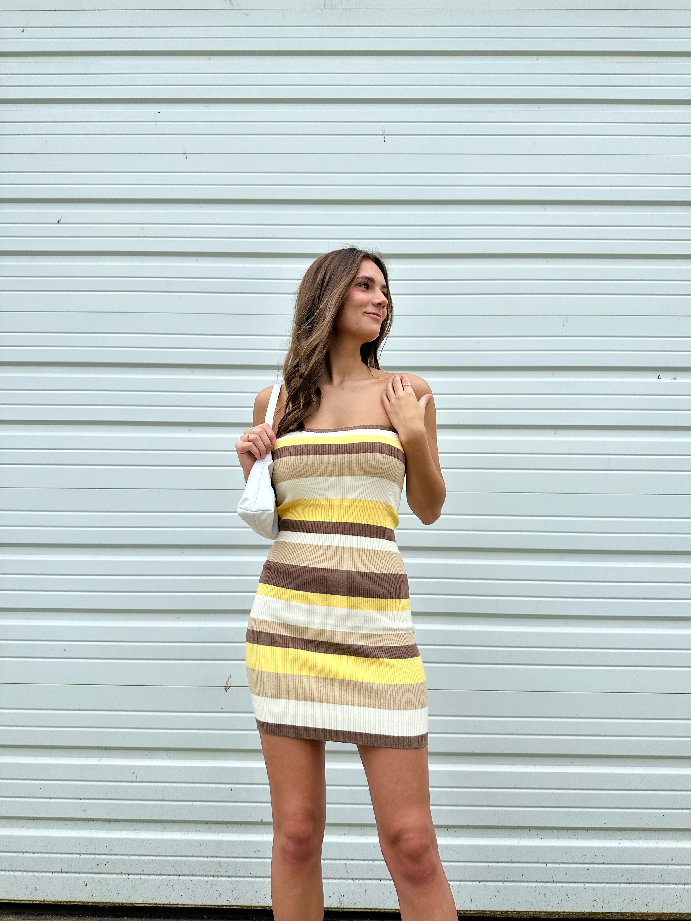 "Something About You" Striped Strapless Knit Mini Dress