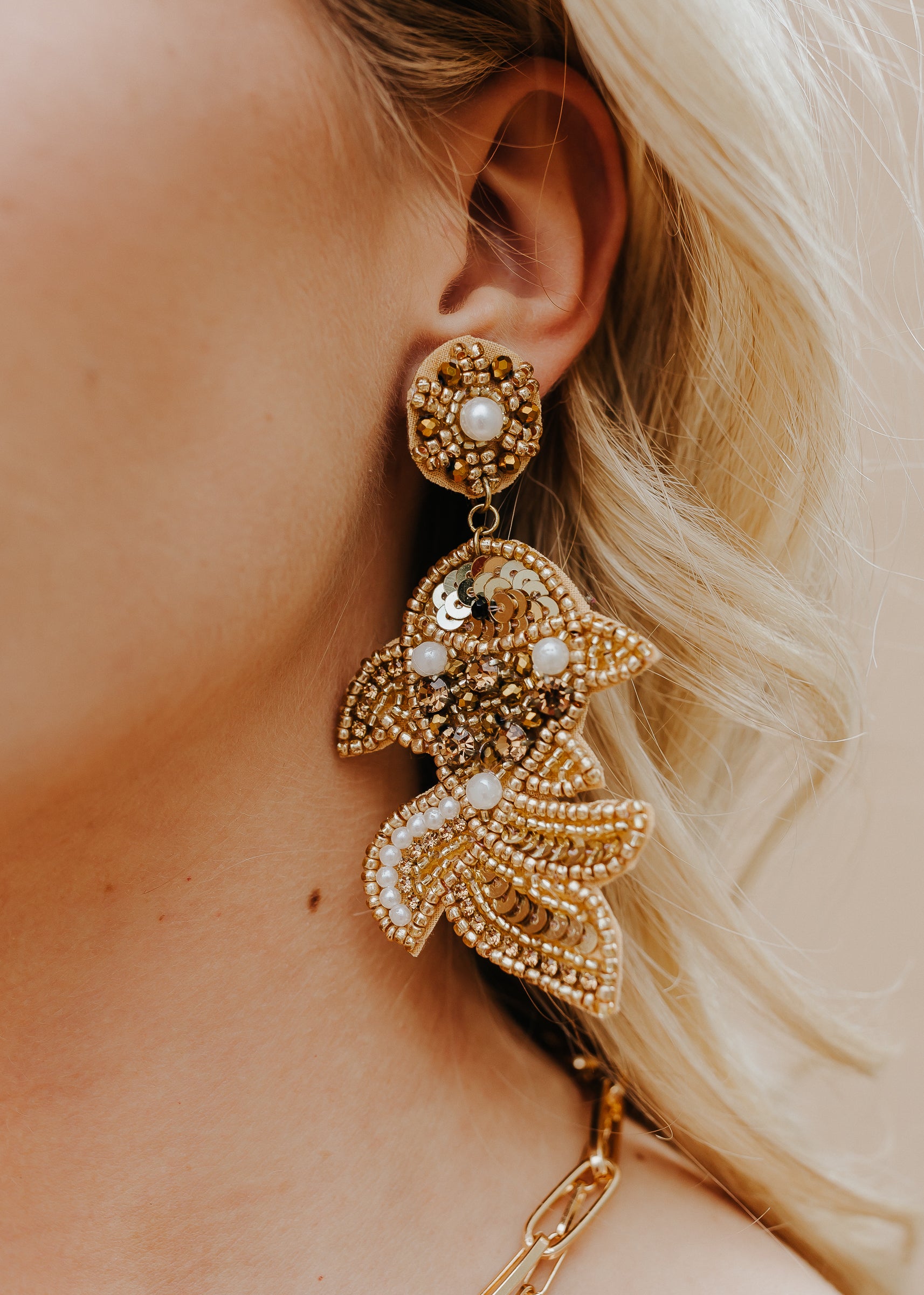 "Such A Catch" Fish Beaded Statement Earrings - Gold