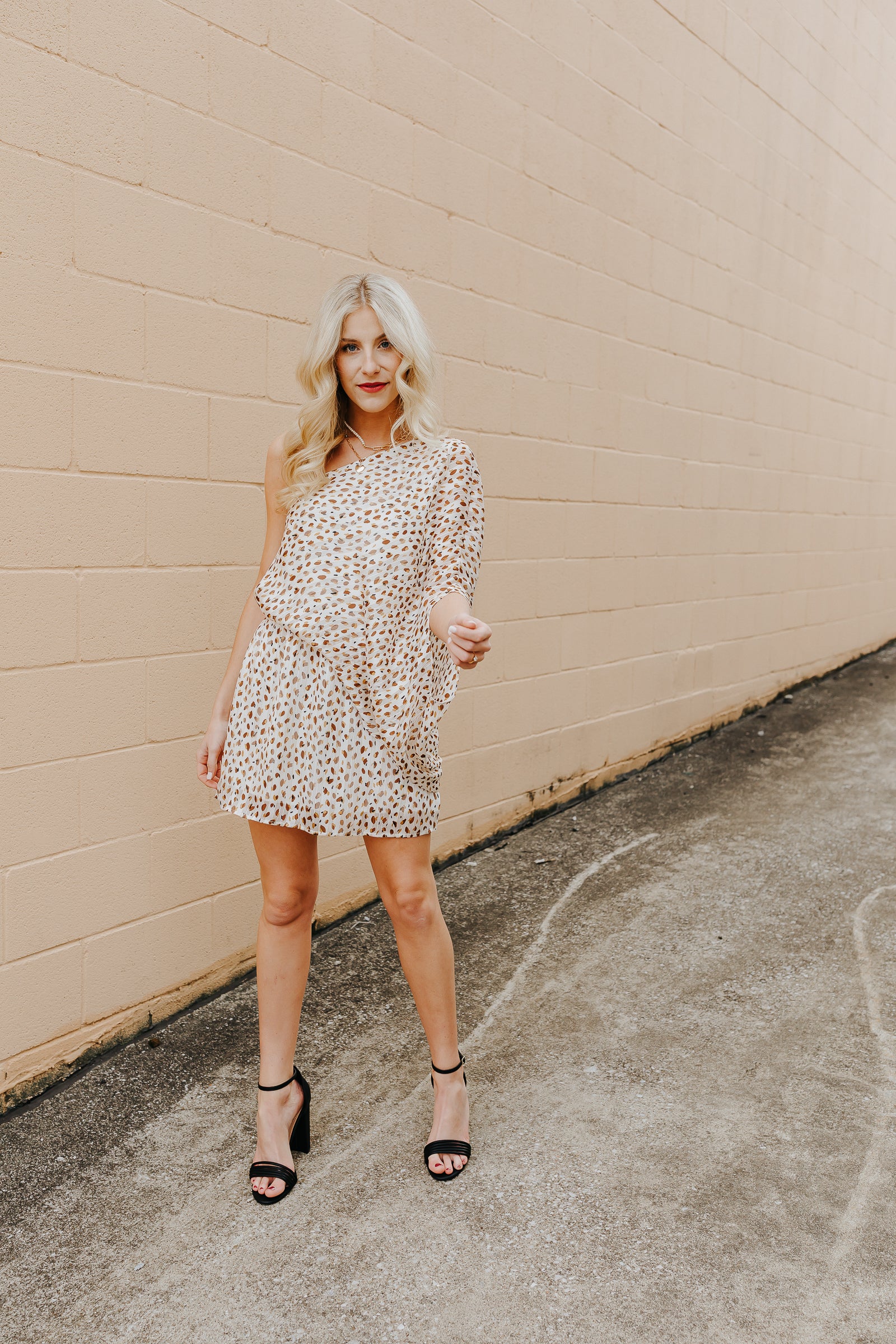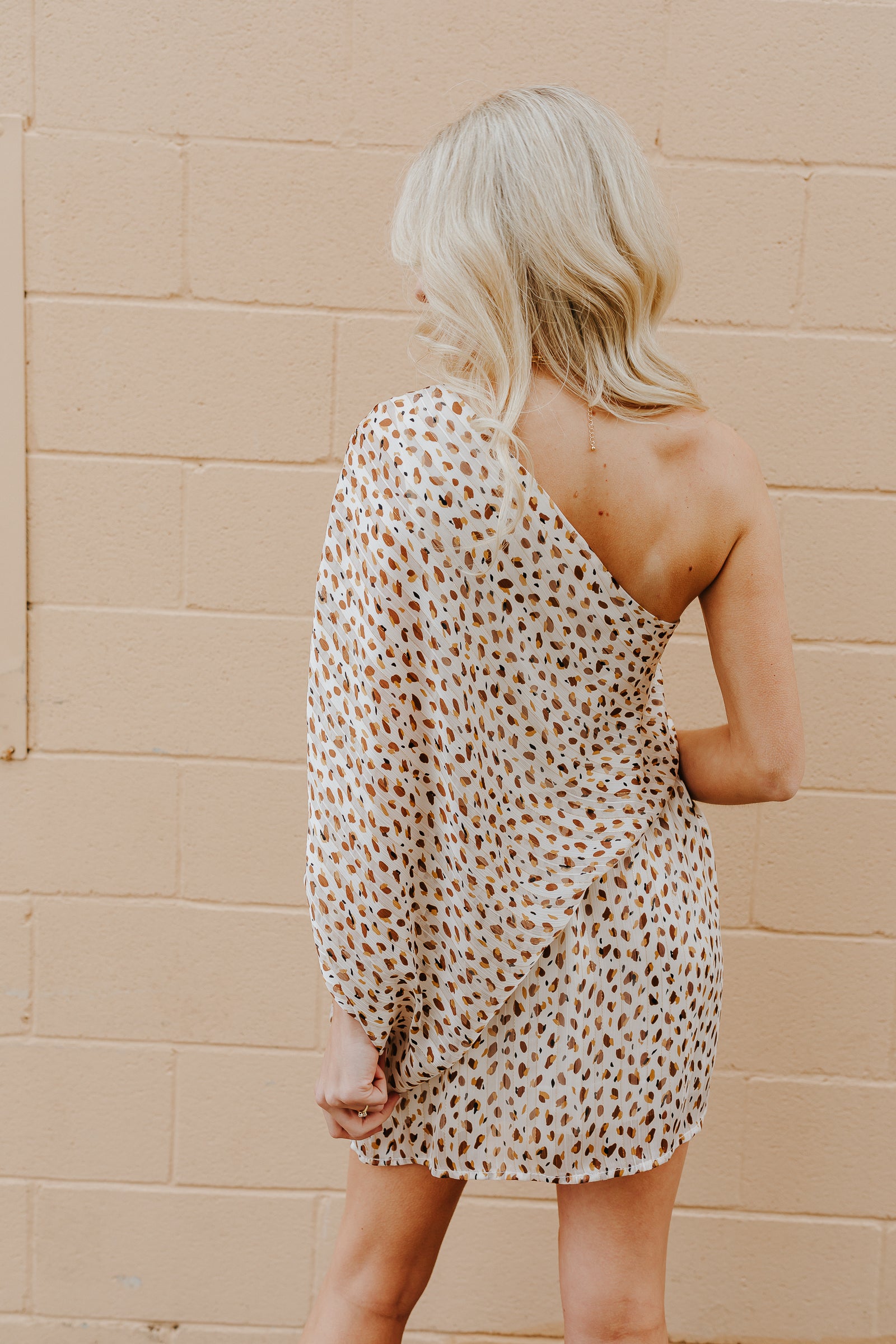 "Sweet Spot" Cream Printed One-Shoulder Dress