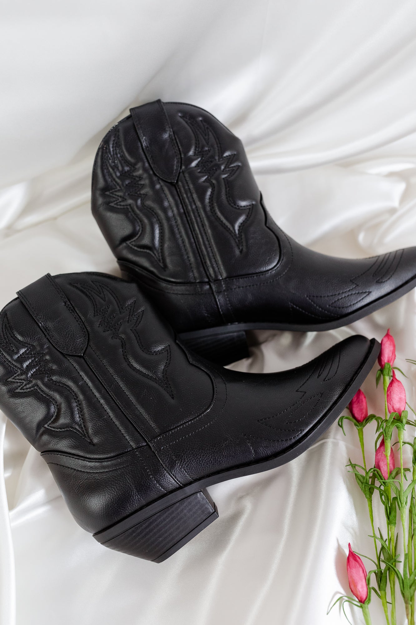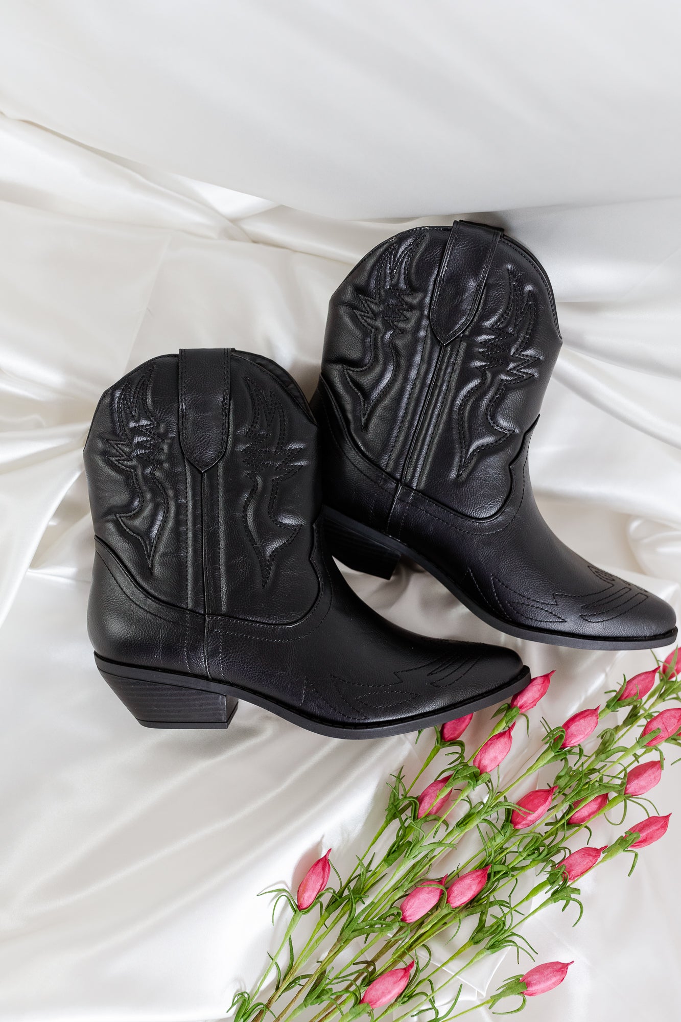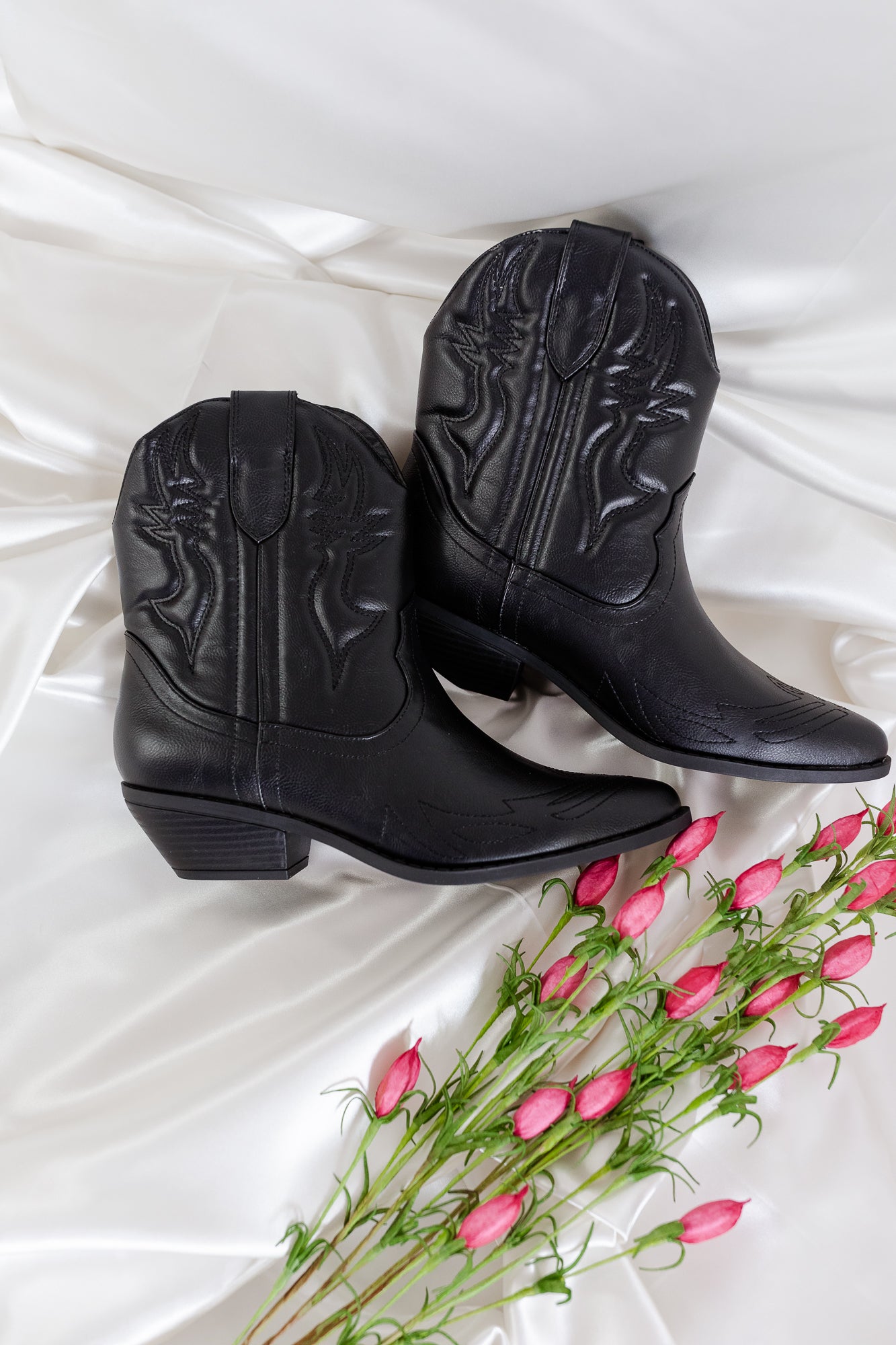 "Watermelon Crawl" Ankle Cowgirl Boots - Black